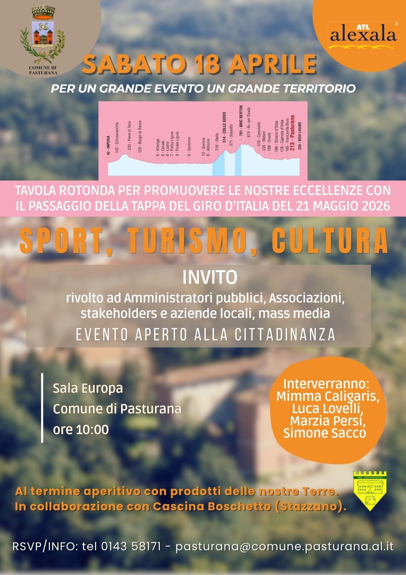 Un incontro dedicato a Sport, Turismo e Cultura in vista del passaggio del Giro d’Italia 2026.