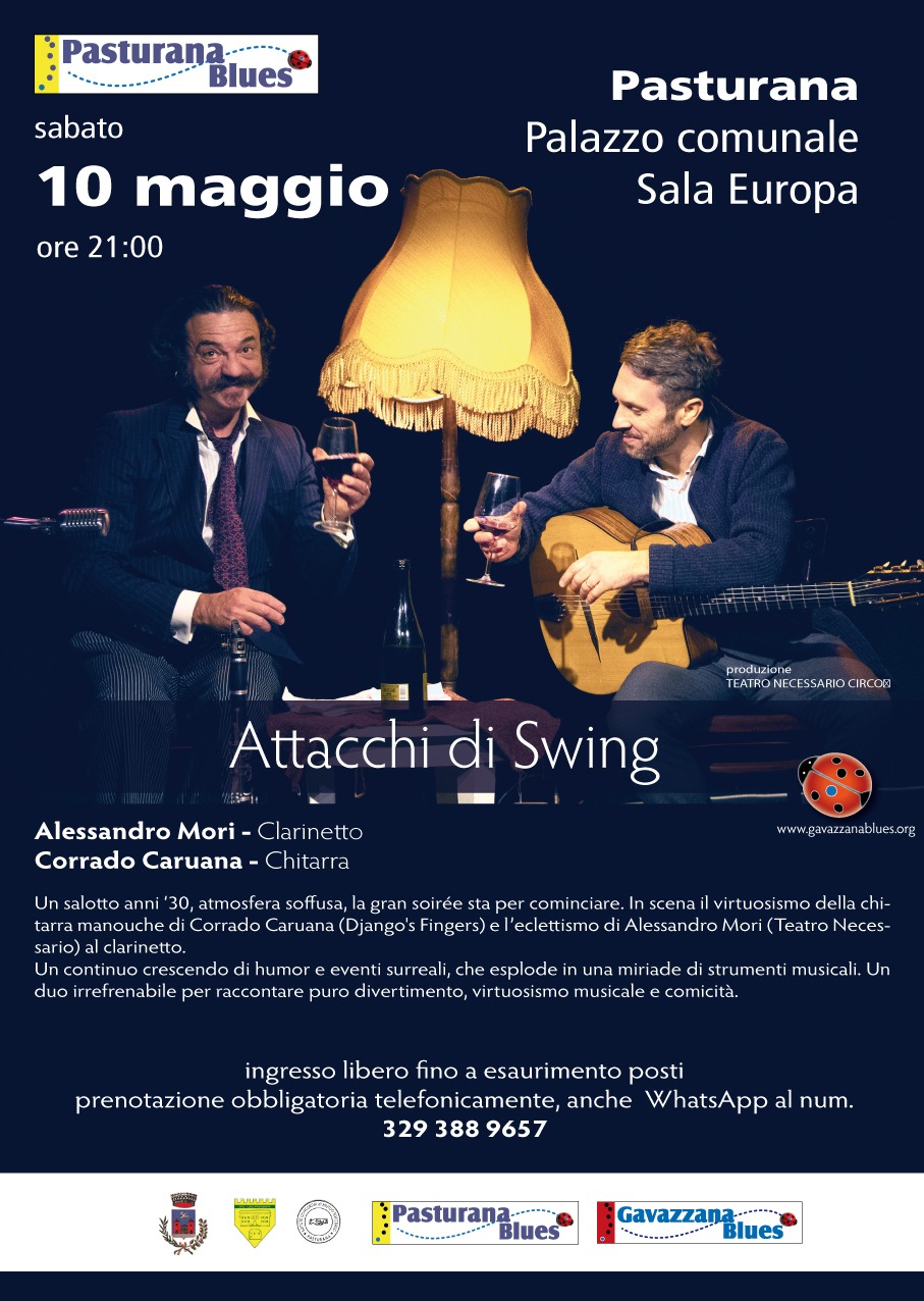 Musica e comicità sono gli ingredienti di questo spettacolo per far ridere, per “approfondire” la storia della musica, per far conoscere musiche che giravano il mondo su una carrozza, per fare un festa manouche e swing con il duo formato da Alessandro Mori, clarinettista votato alla comicità, e Corrado Caruana, virtuoso chitarrista che scala la tastiera con il sanguigno spirito gypsy jazz.